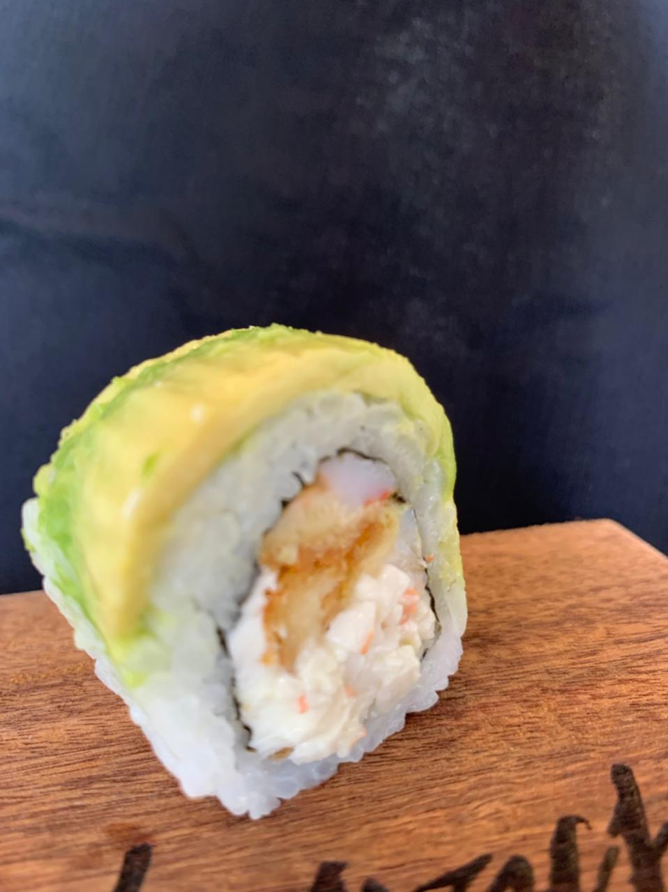 P/D Aguacate , Camarón, queso manchego, y pepino, P/F empanizado, tampico y un toque de salsa shirasha.