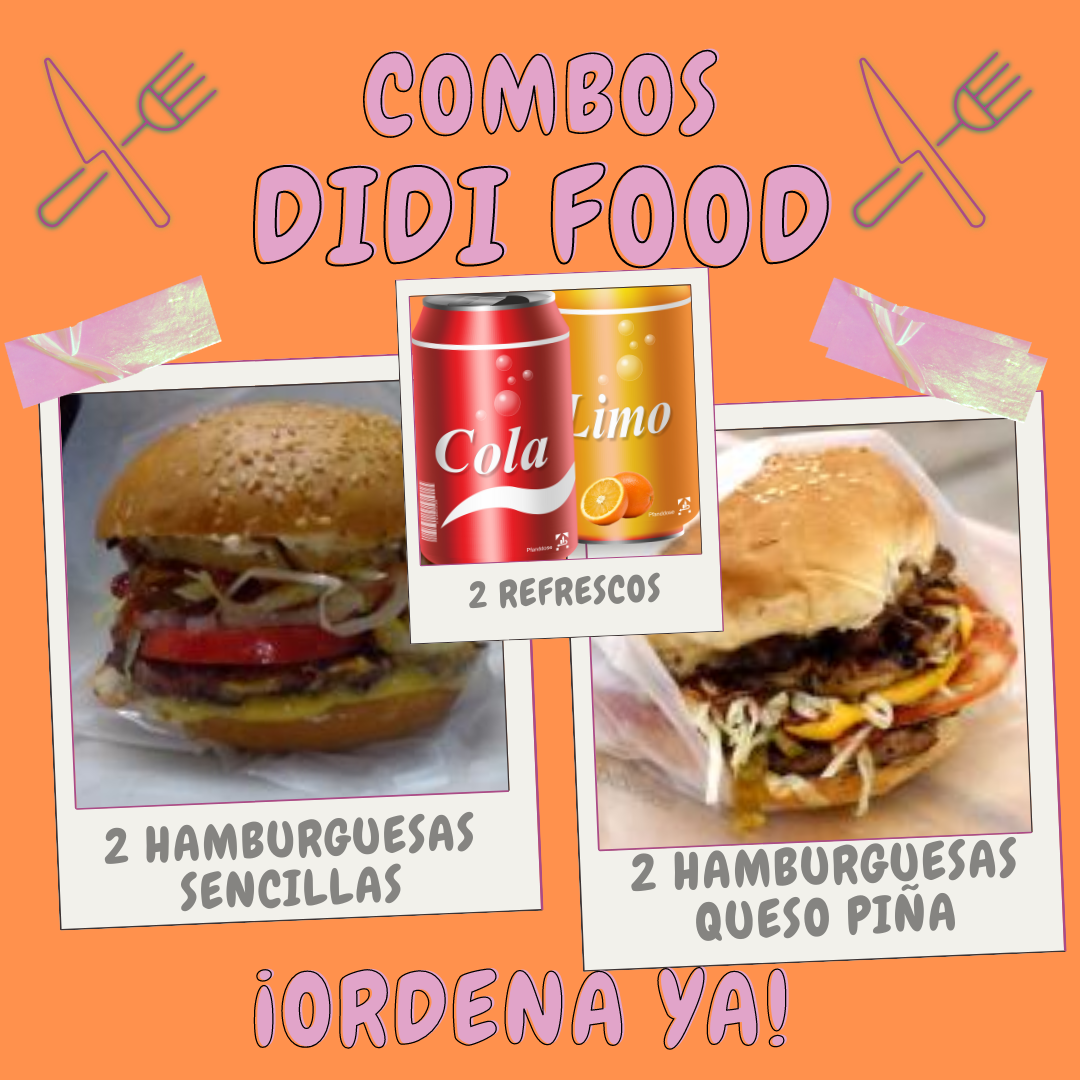 PAQUETE PUEDE SER PARA COMPARTIR O INDIVIDUAL DEPENDIENDO DE TU ANTOJO INCLUYE 2 HAMBURGUESAS + 1 REFRESCO.