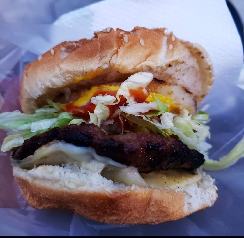 Hamburguesa Doble Carne, Doble Queso y Piña