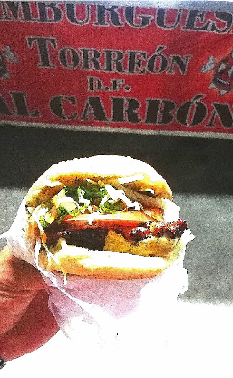 1 carne de res, 2 rebanadas de queso manchego, jitomate, cebolla, lechuga, jalapeño, cátsup y mostaza.