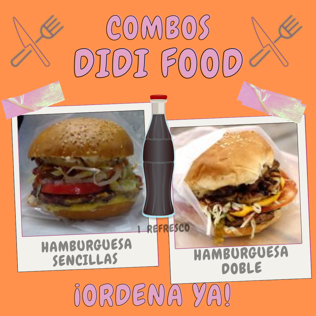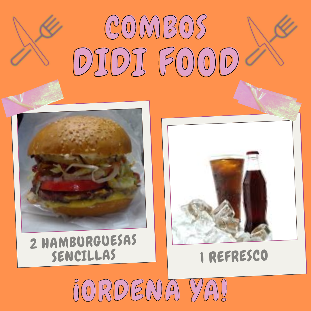 Este paquete puede ser individual o para compartir dependiendo de tu hambre, incluye 2 hamburguesas sencillas + 1 refresco.
