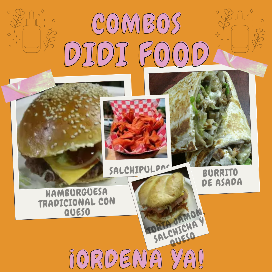 Burrito de Asada*1 + Hamburguesa Hawaiana*1 + Torta jamon, Salchicha y queso*1 + Salchipulpos*1