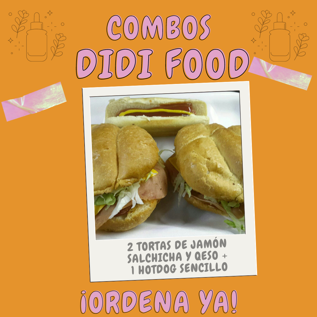 2 TORTAS DE JAMÓN, SALCHICHA Y QUESO + 1 HOT DOG SENCILLO