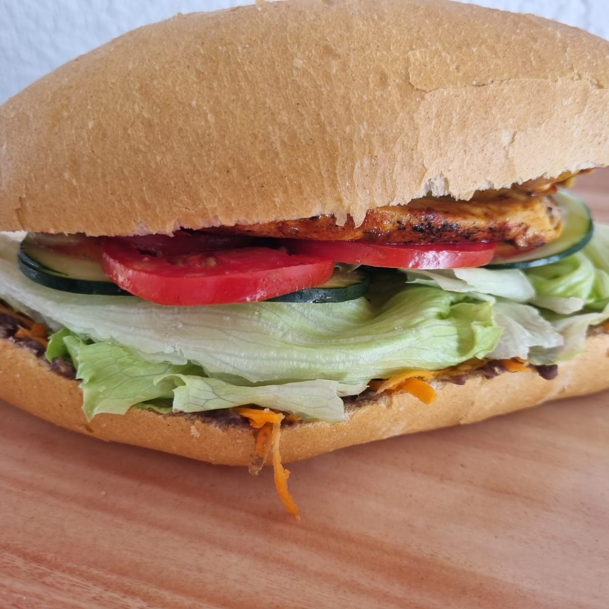 Delicioso pan de finas hierbas con 75 gr de pollo a la plancha