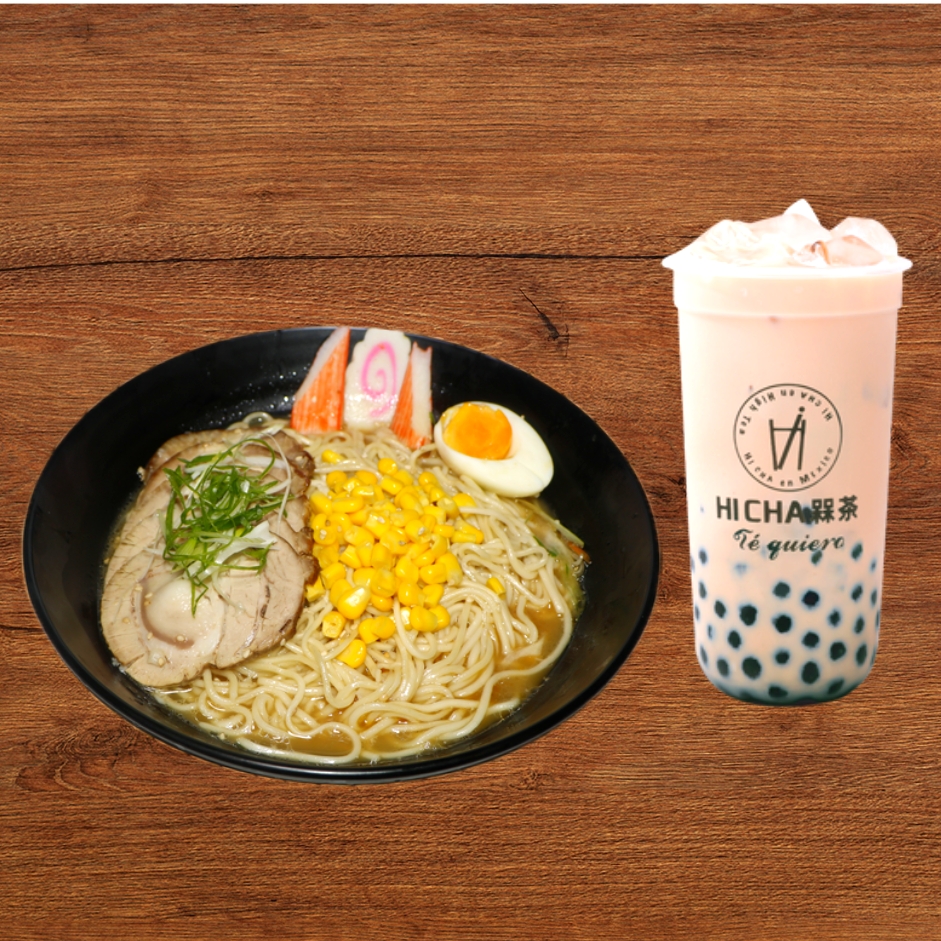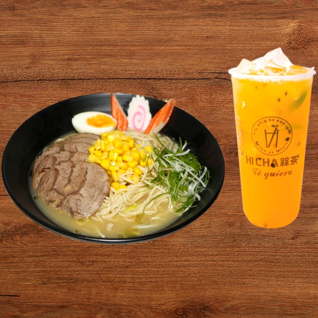Pasta base ramen, chashao, camarón, surimi, naruto, huevo, elote, cebollín, col, ajonjolí y nuestro caldo especial.