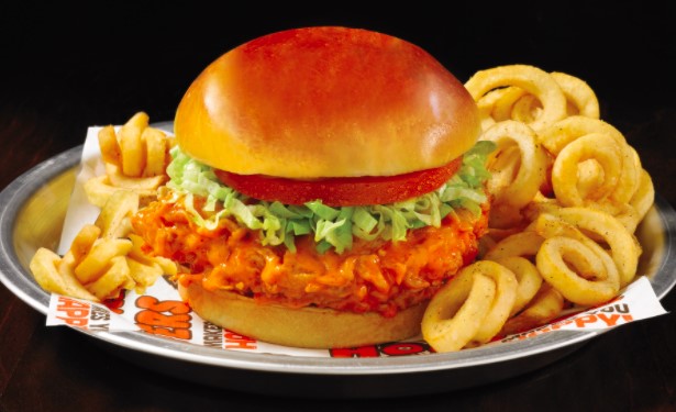 ¡Hamburguesa de camarón al puro estilo Hooters!Camarones empanizados y bañados en nuestrasalsa de tamarindo, con piña asada.