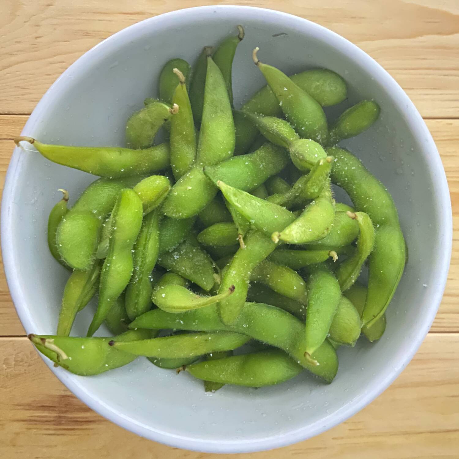 Frijol de soya hervido con un toque de sal o asados con un toque de soya spicy