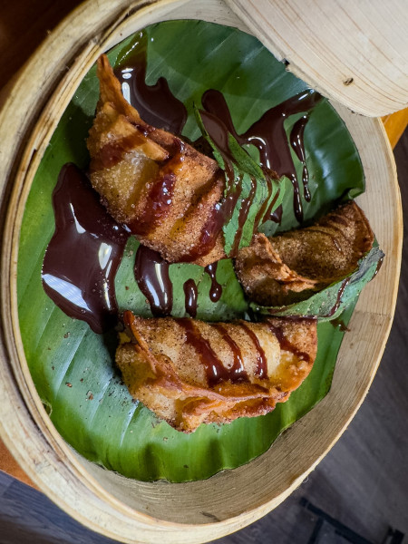 ¡EL TRADICIONAL!, ROLLITO CRUJIENTE DE PASTA WONTON RELLENO DE VEGETALES Y FIDEOS HERUSAME ACOMPAÑADO DE SALSA SWEET CHILLI !