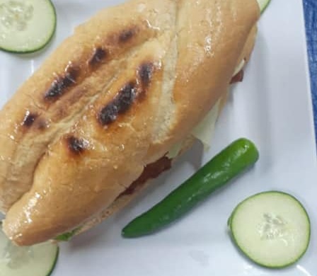 Delicioso baguette relleno de espinaca, zanahoria rallada, betabel rallado, queso panela, lechuga, pepino y un toque de mayonesa.