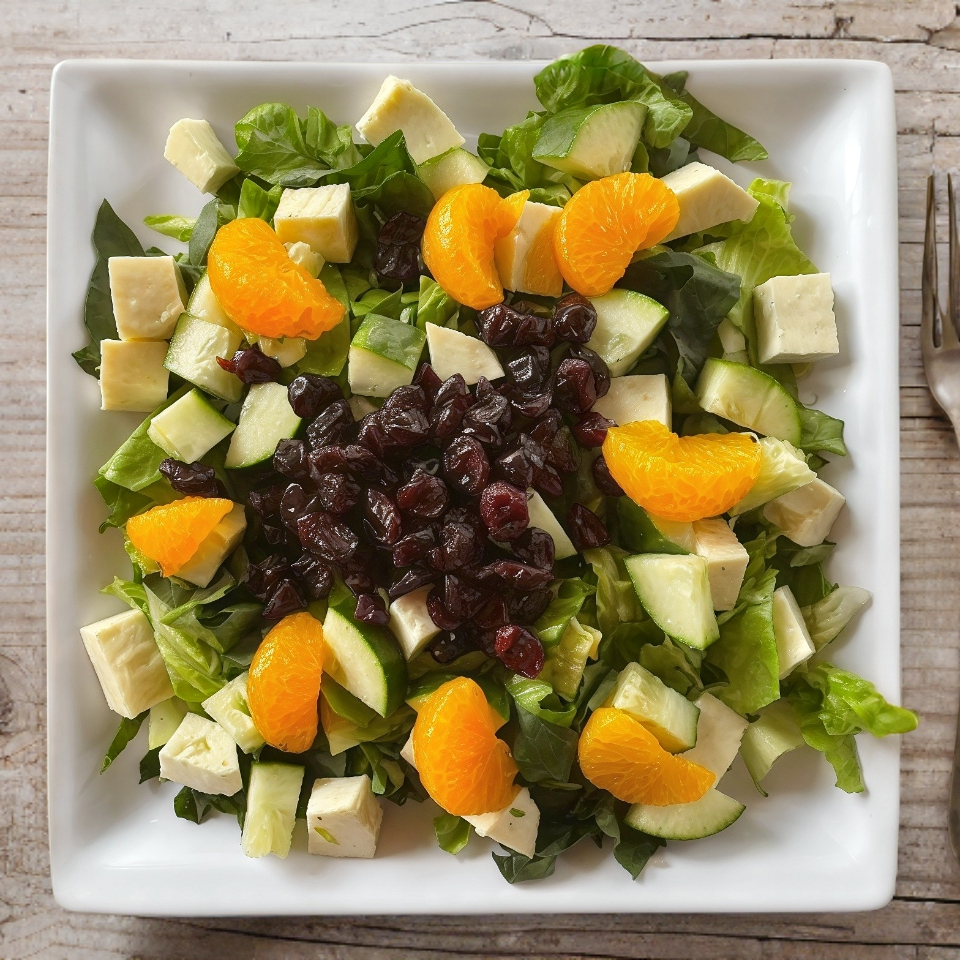 Base de lechuga italiana, con pechuga a la plancha, queso panela, mandarina y arándano. (400 gr) aprox.