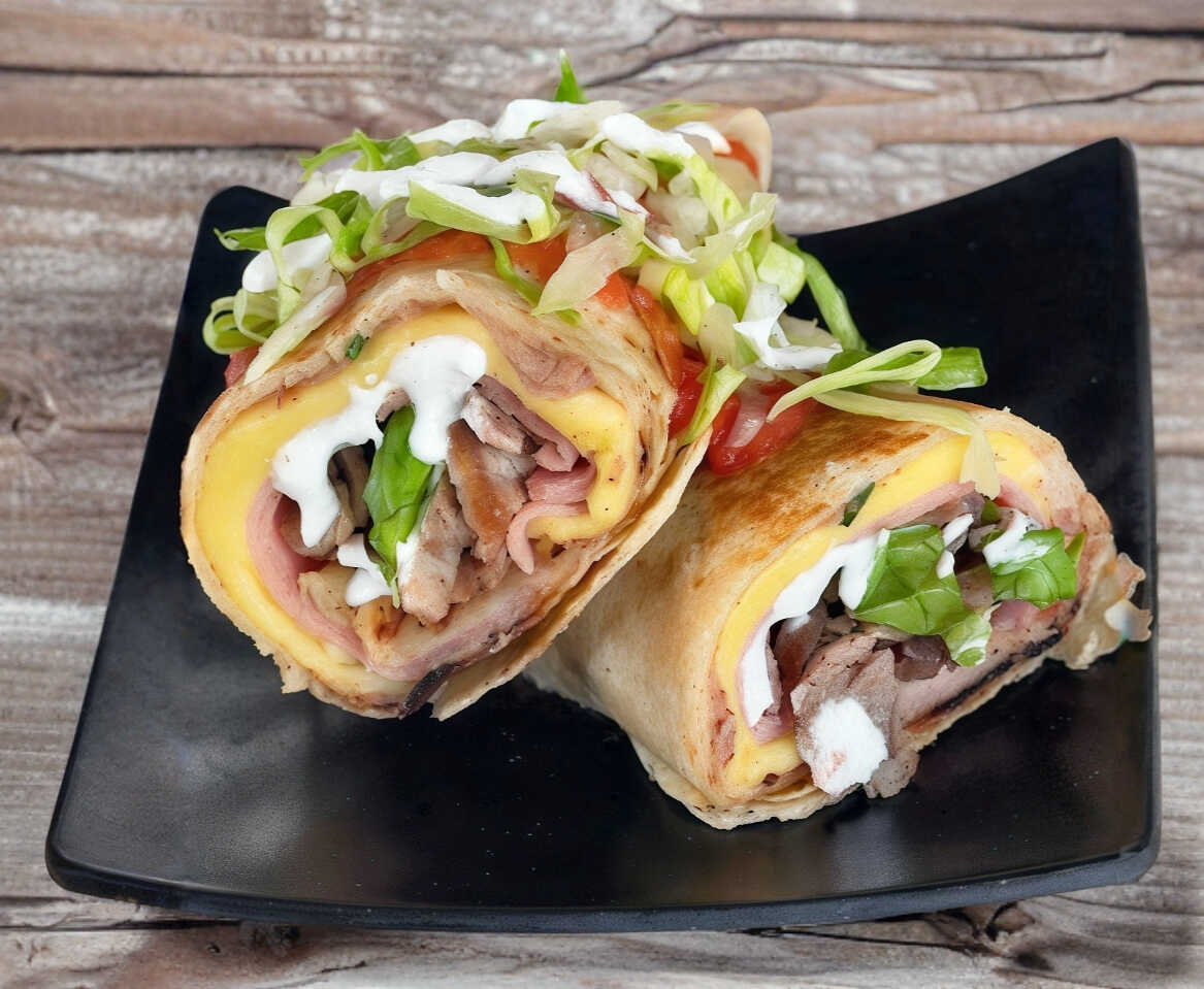 Tortilla de harina enrollada con frijol refrito, jamón, queso manchego, mayonesa y un toque de salsa roja, acompañado de lechuga, crema y queso. ¡Elige tu ingrediente favorito!