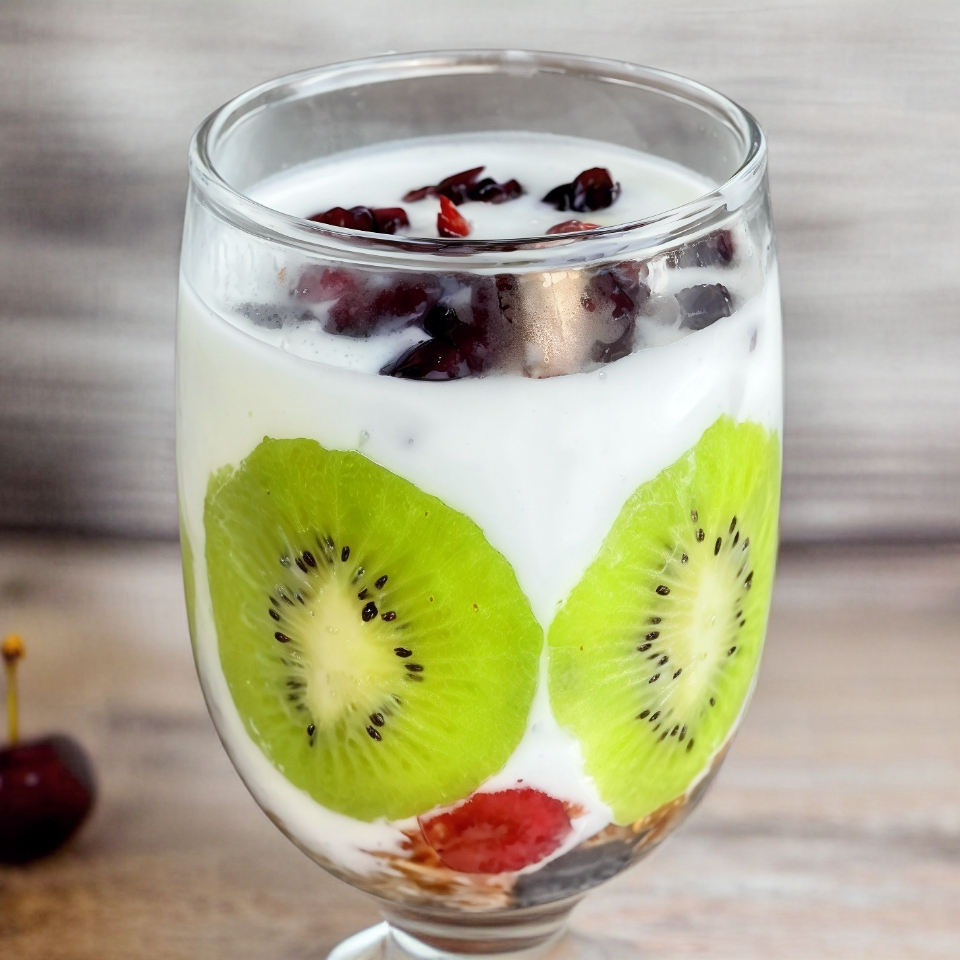 Base de granola, fresa, kiwi, yogurt natural y arándano. (12 onzas).