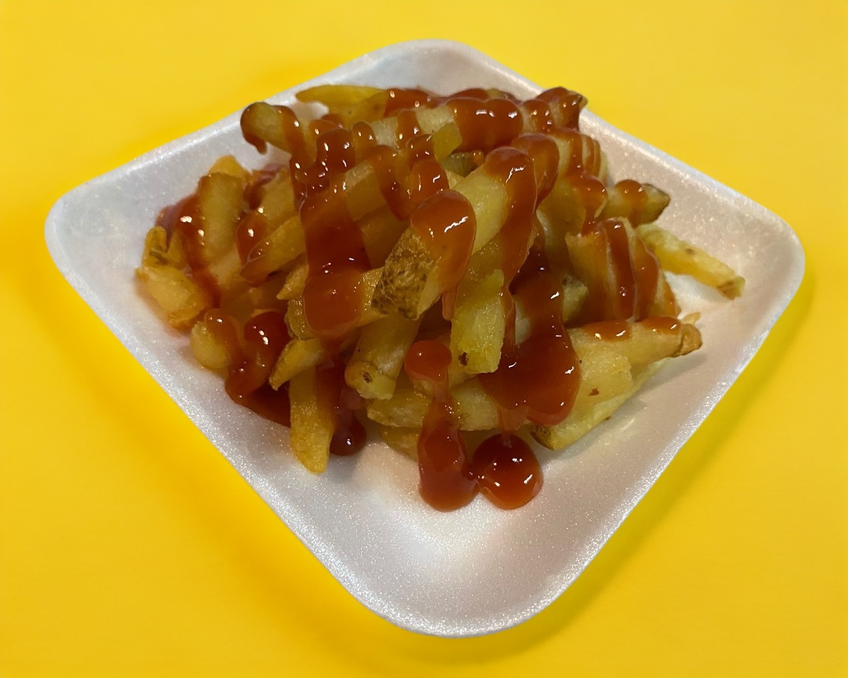 Salchicha jumbo, aderezo, catsup, cebolla.