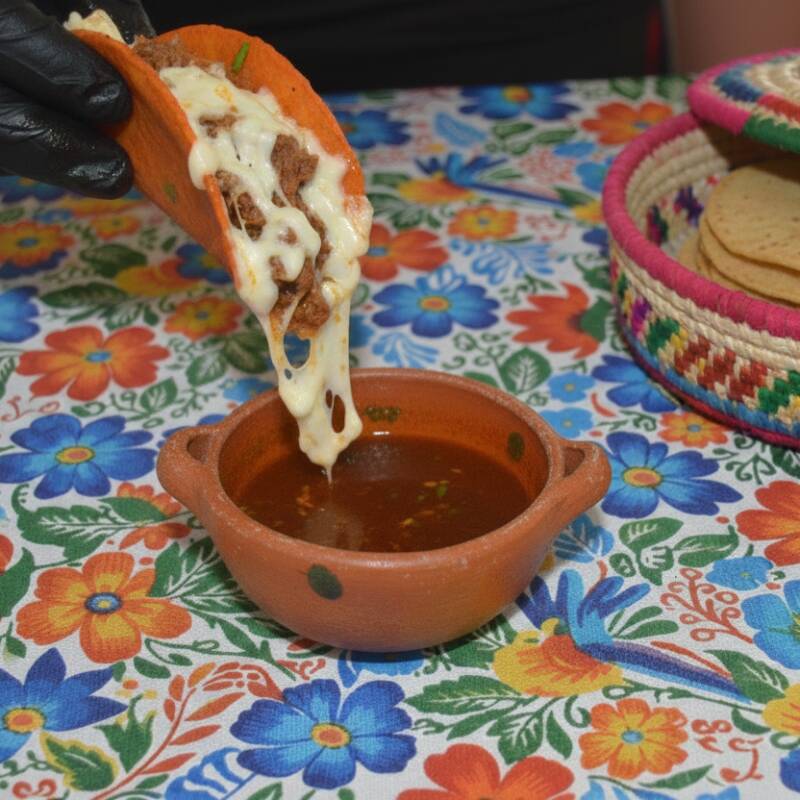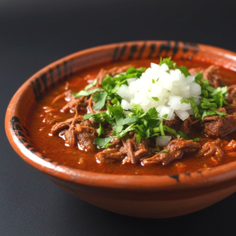 carne de res premium en caldo de chiles con cebolla, cilantro.