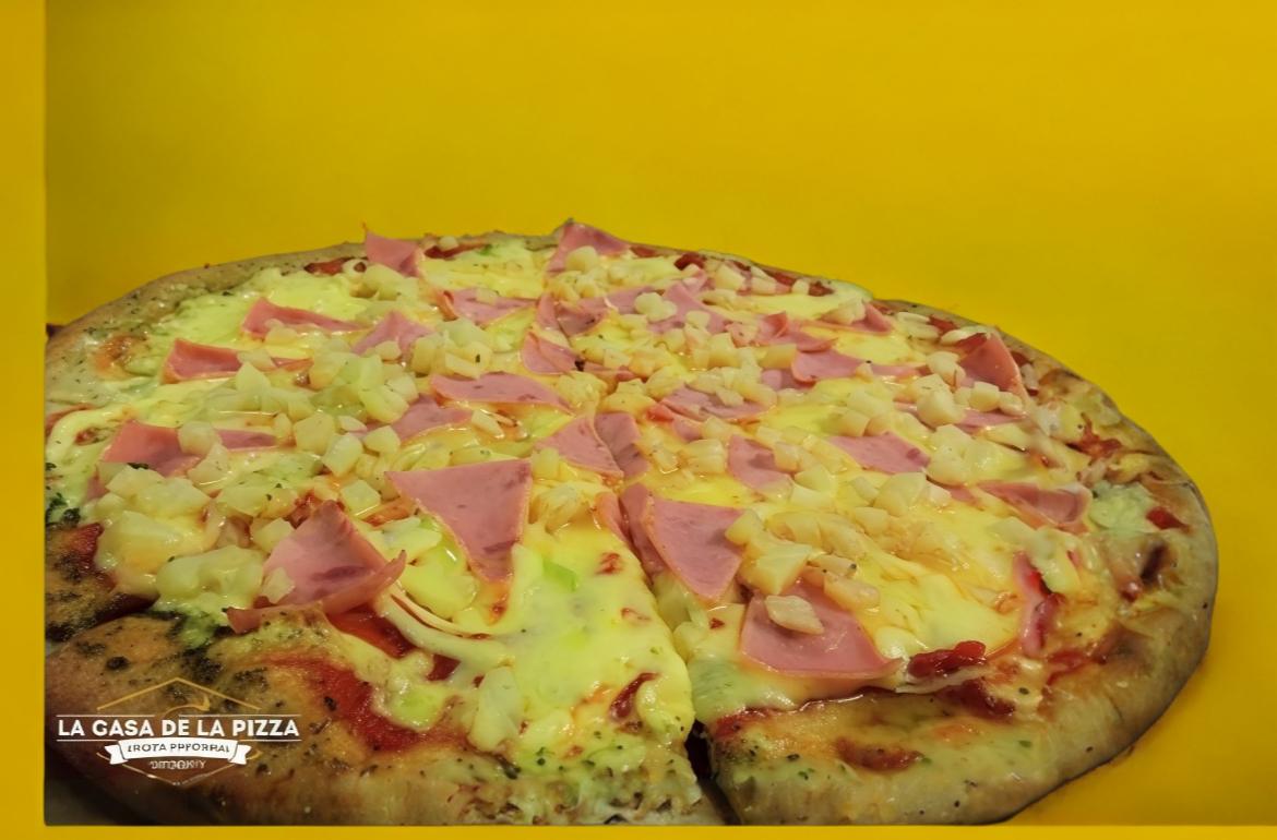 Salsa Casse, queso, Jamón y Trocitos de piña, (8 rebanadas)