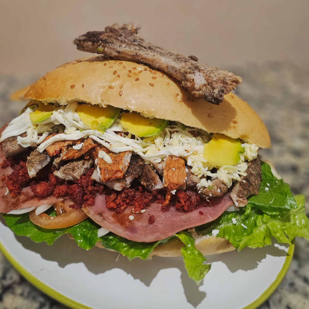 Milanesa, Jamón, Huevo, Salchicha, Chorizo y mezcla de quesos. Todas nuestras tortas van con mayonesa frijol y verduras