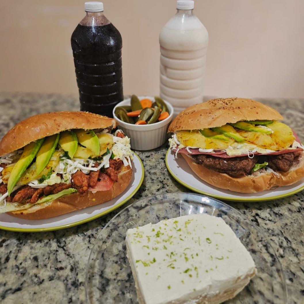 Milanesa, Chorizo y mezcla de quesos, nuestras tortas llevan mayonesa, frijol y verduras