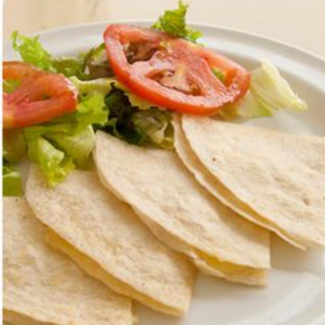 tortilla de harina jumbo rellena de queso manchego y acompañada de ensalada