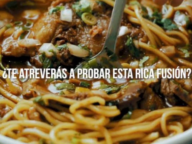 Atrevete a probar esta combinacion de fideos con birria para deleitar a los paladares mas exigengentes, con sus complementos cebolla, cilantro, limon y salsa