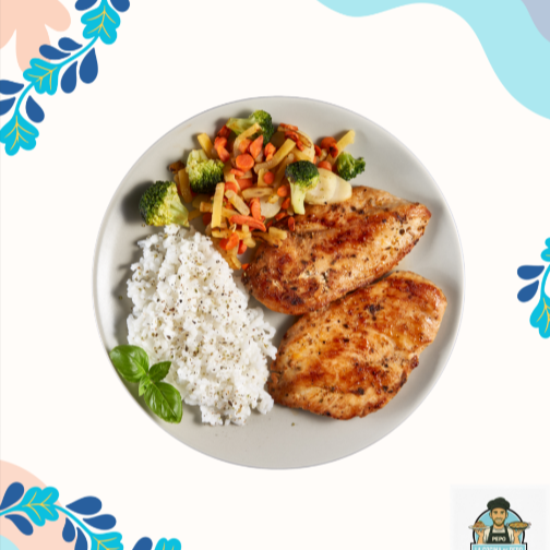 PECHUGA A LA PLANCHA CON ARROZ Y ENSALADA*1 + AGUA DE JAMAICA 500 ML*1 + SOPA DEL DÍA*1