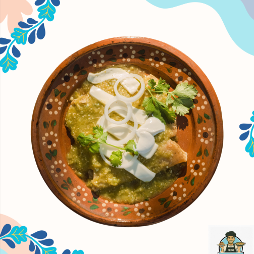 ENCHILADAS VERDES DE POLLO*1 + SOPA DEL DÍA*1 + AGUA DE HORCHATA 500 ML*1