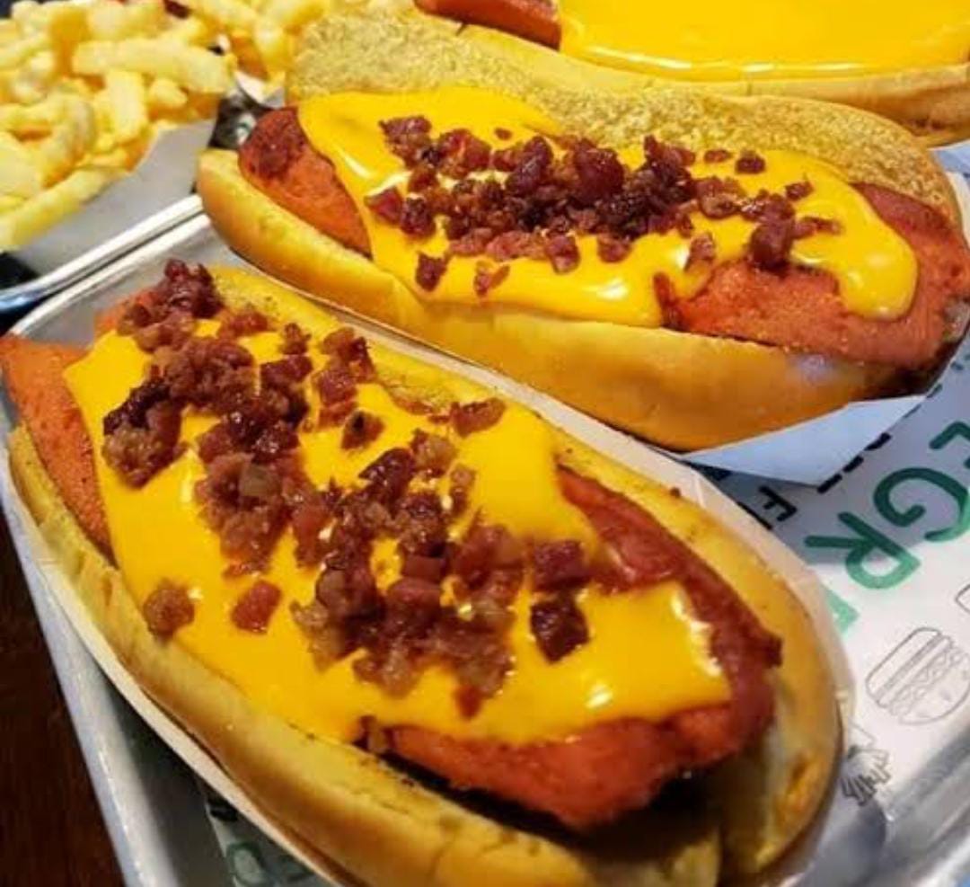2 Hot-Dog's de Queso Cheddar y Tocino🌭🍟