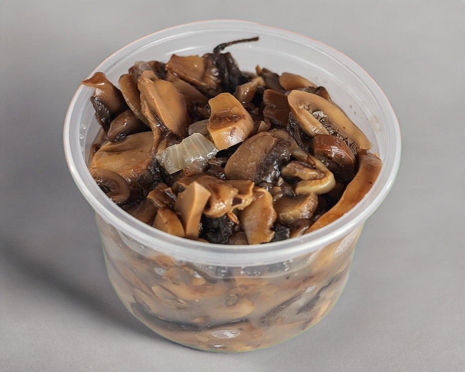 Medio litro de champiñones con cebolla. Incluye tortillas artesanales.