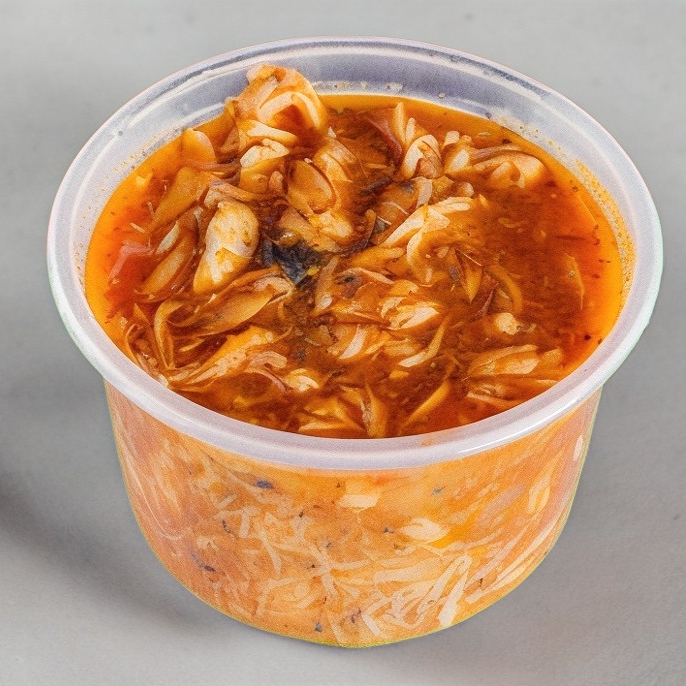 Medio litro de pollo deshebrado con cebolla, jitomate y chipotle. Incluye tortillas artesanales.