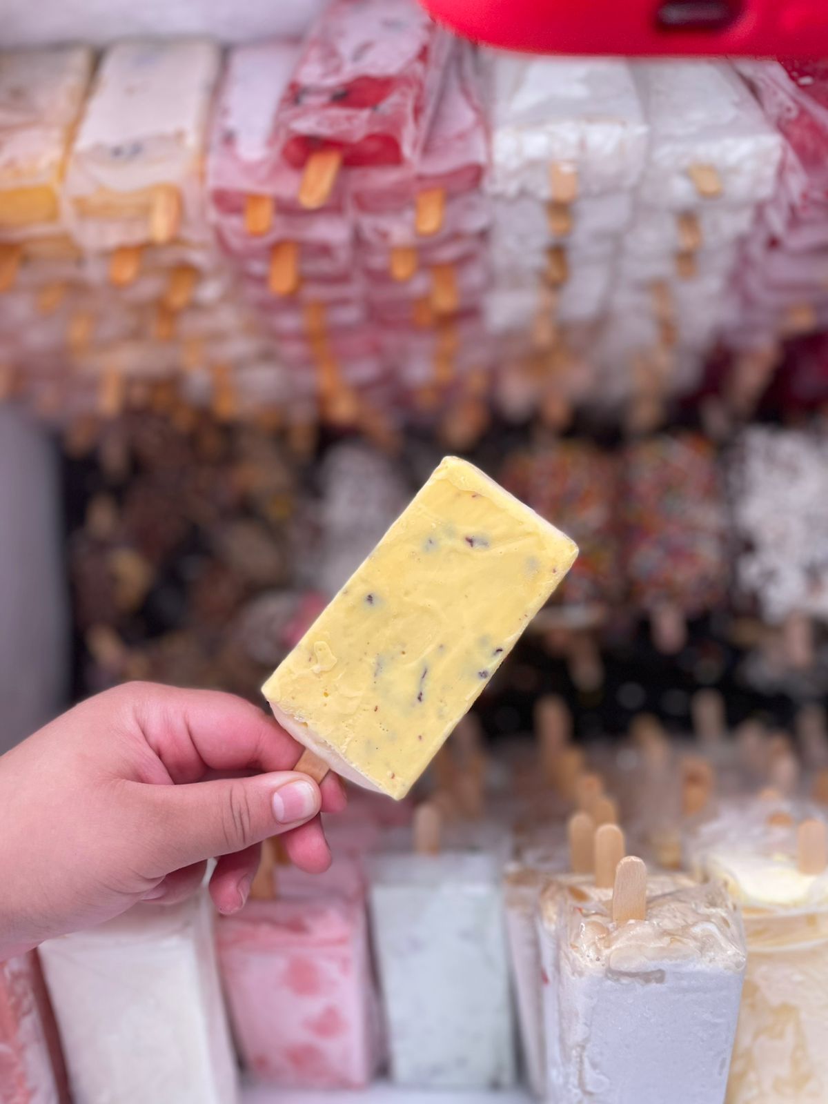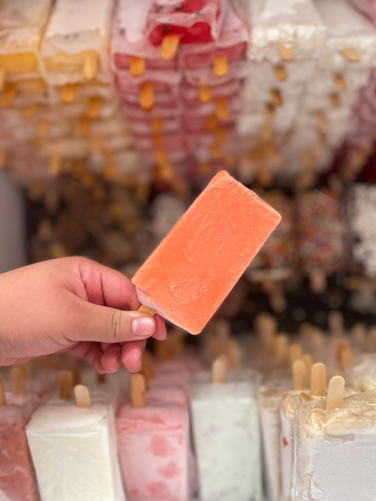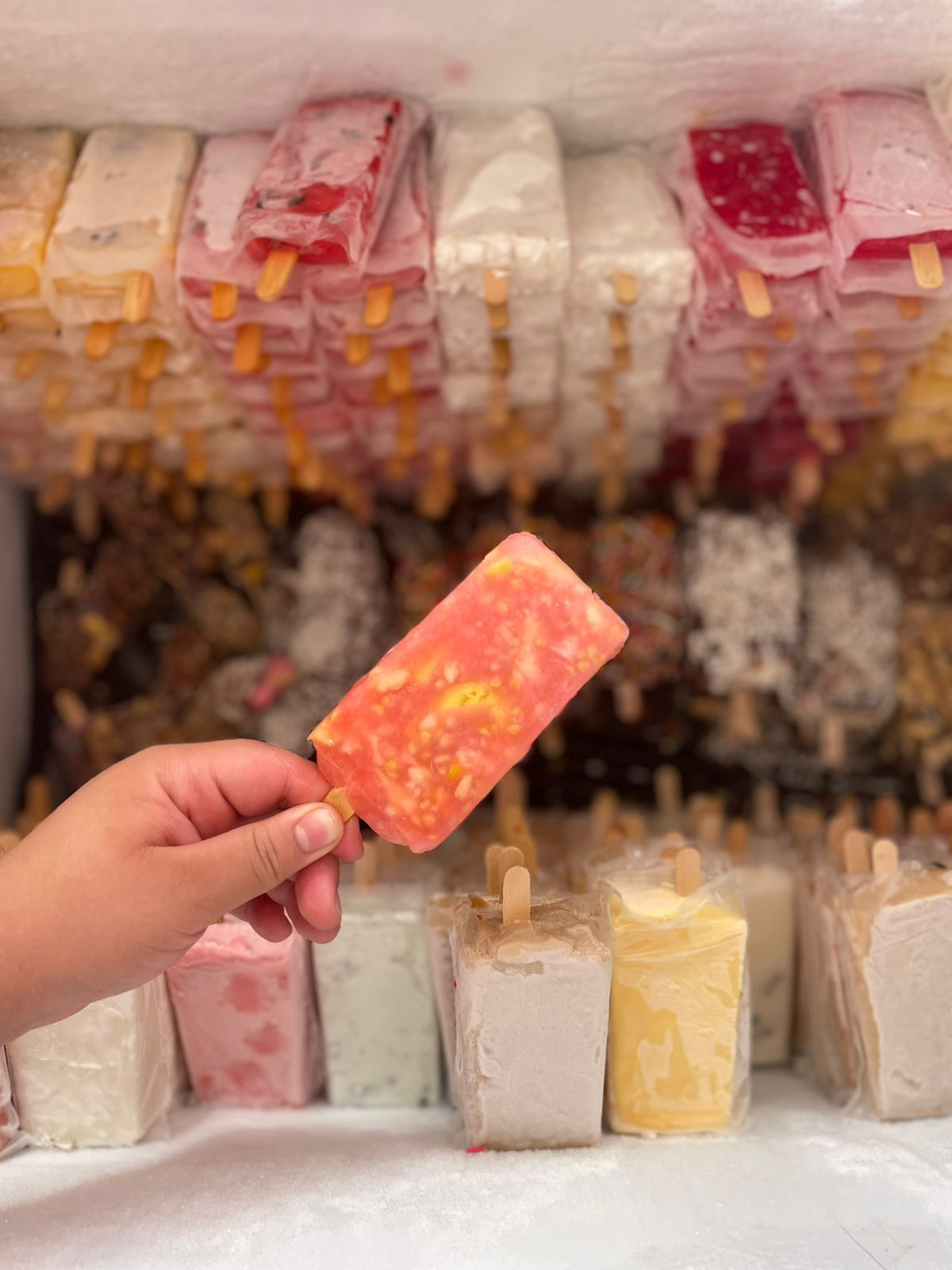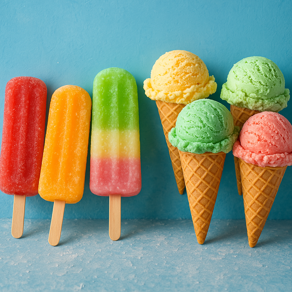 Variedad de deliciosas y refrescantes paletas con crema.