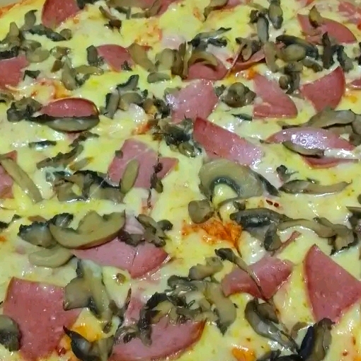 Masa artesanal con pasta de tomate. Jamón queso mozarella champiñones delicia