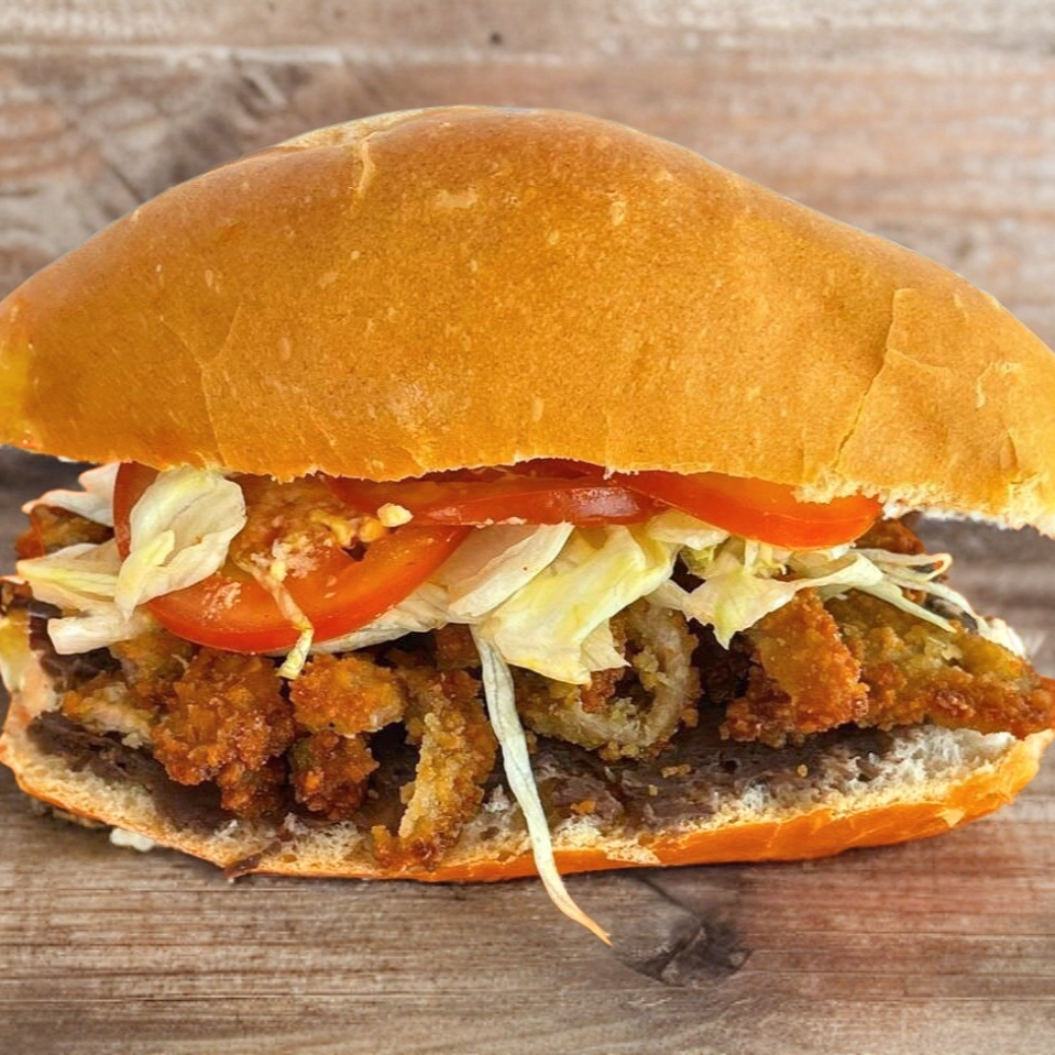 Deliciosa y crujiente milanesa servida en torta con frijoles, mayonesa, jitomate y lechuga