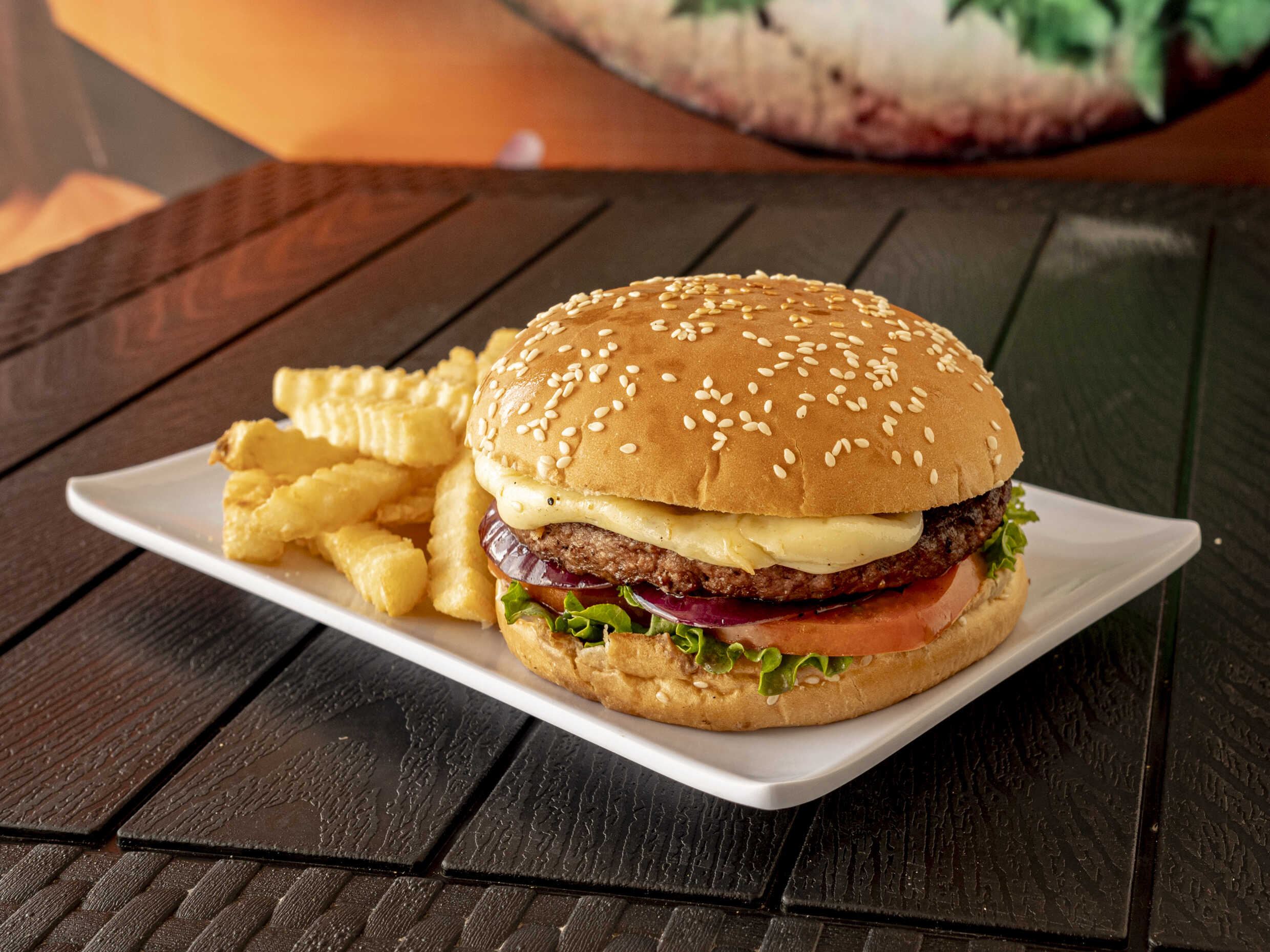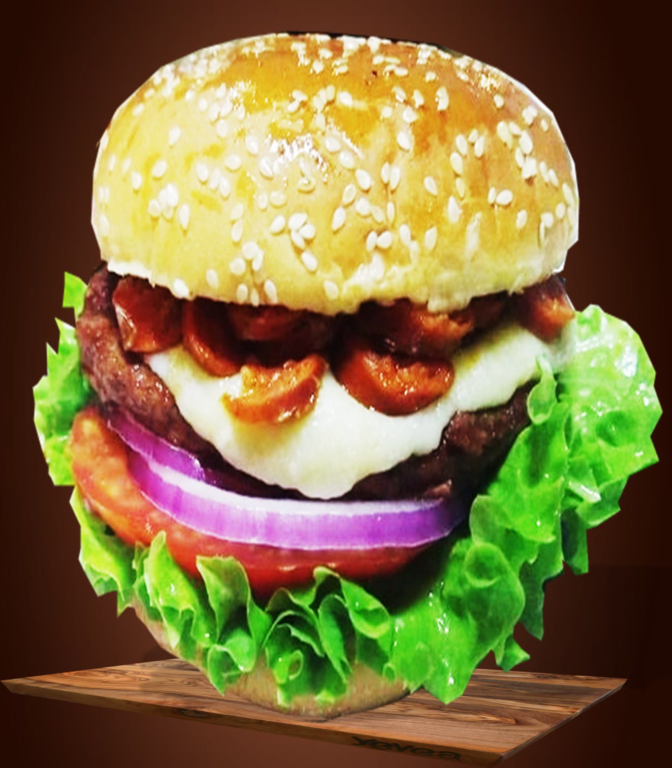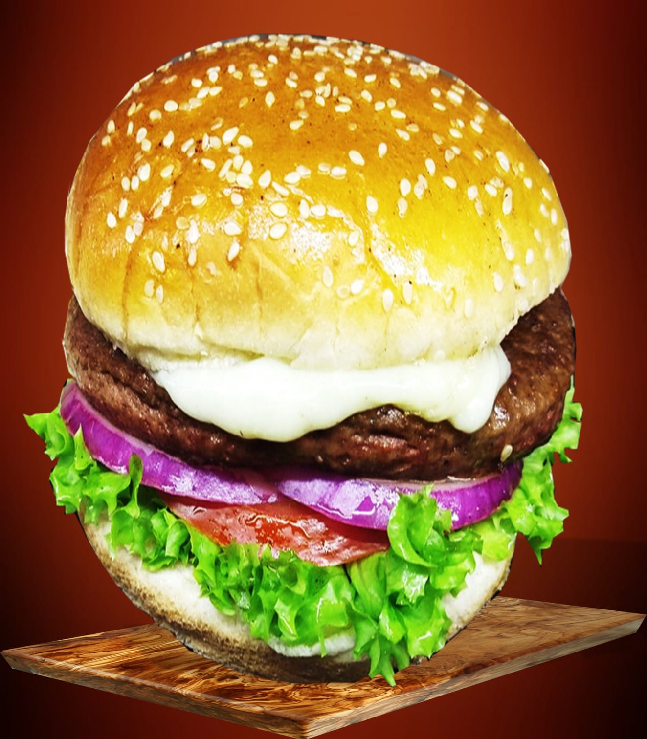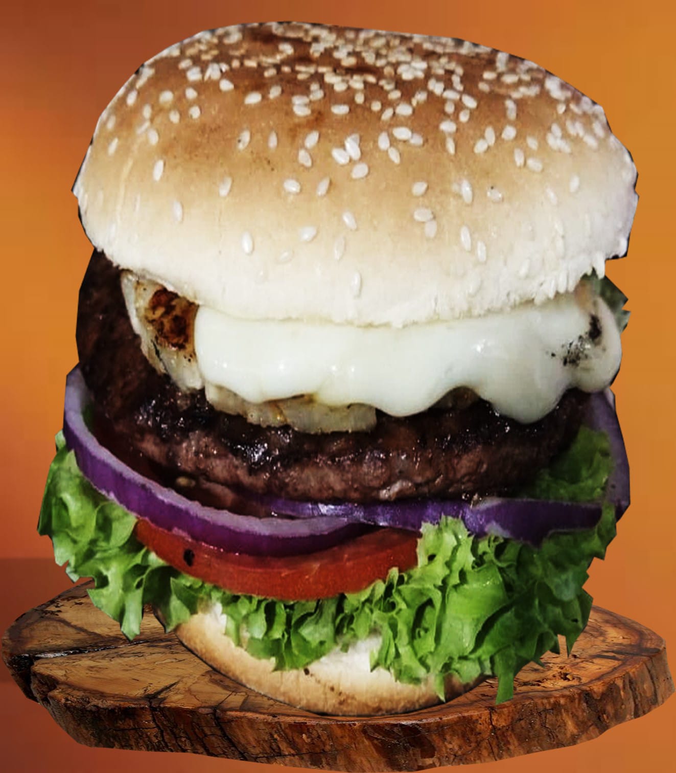 150 gr de res, lechuga, tomate, cebolla y queso.