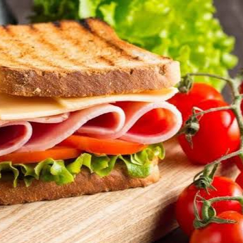 Delicioso sándwich de jamón y queso con tomate lechuga y cebolla