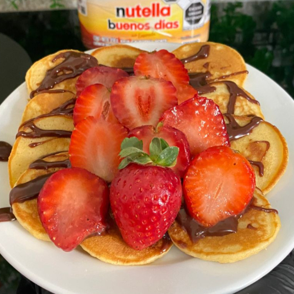 25 pzas acompañados de fresa, platano, kiwi, nutella y lechera.