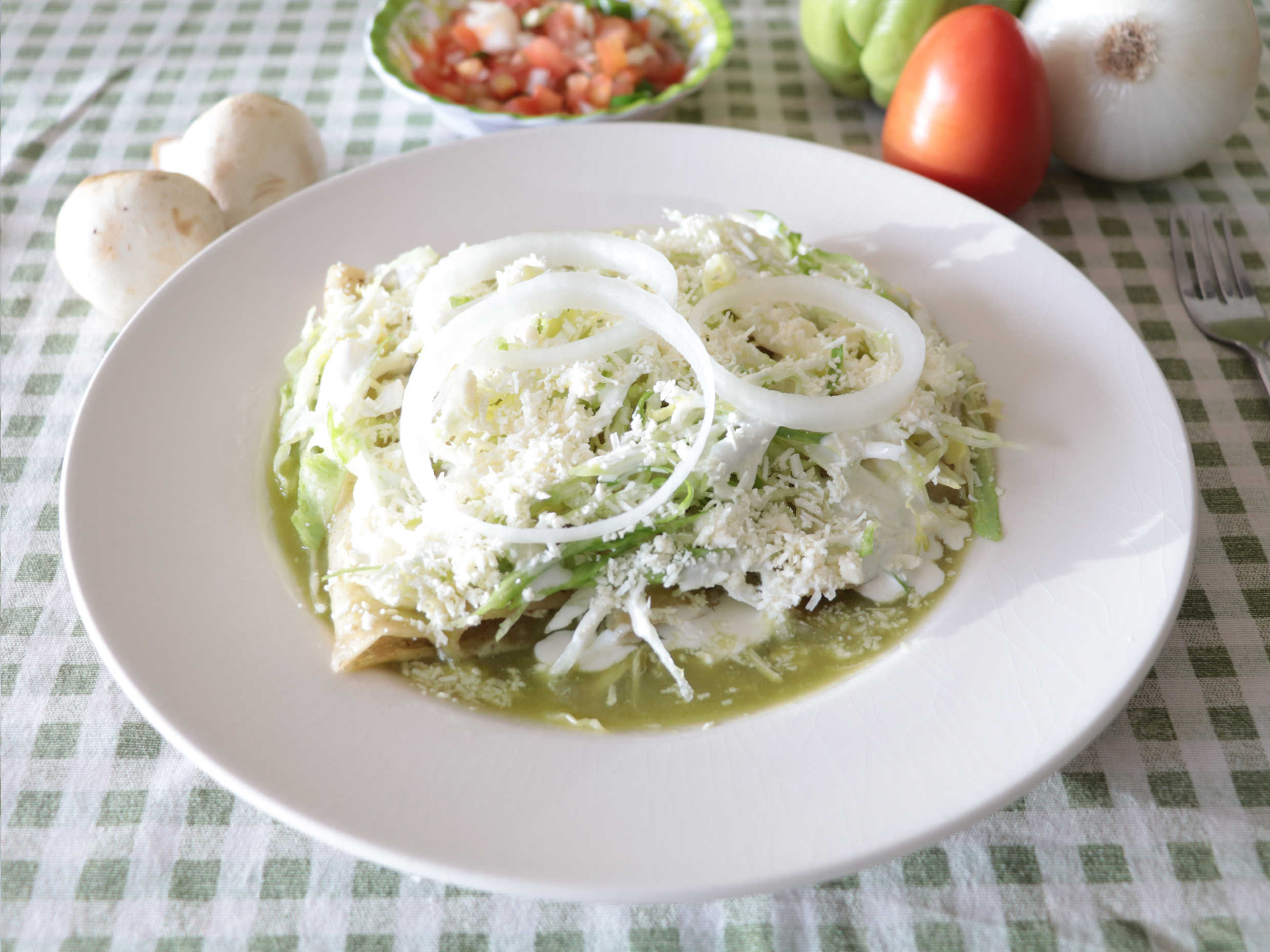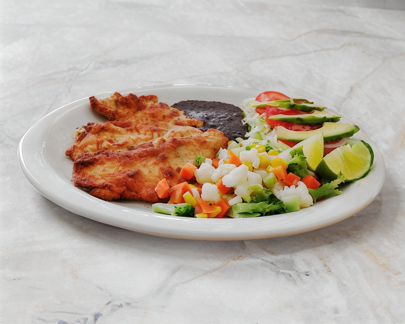acompañadas con frijoles refritos , salsa , tortillas , ensalada