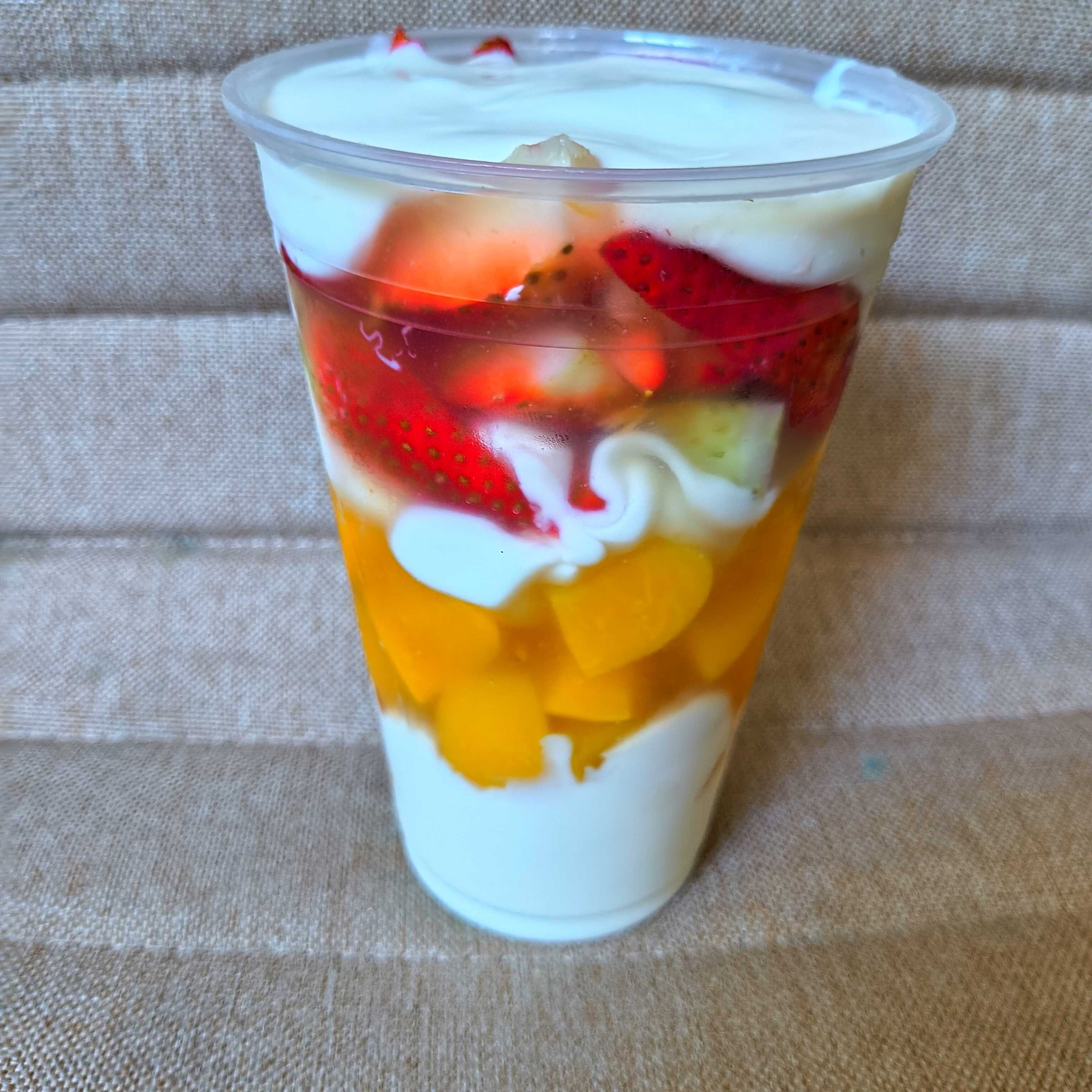 fresas con crema de tres leches bañadas de granola con miel nuez y arandanos secos