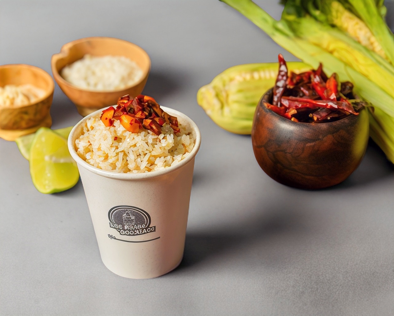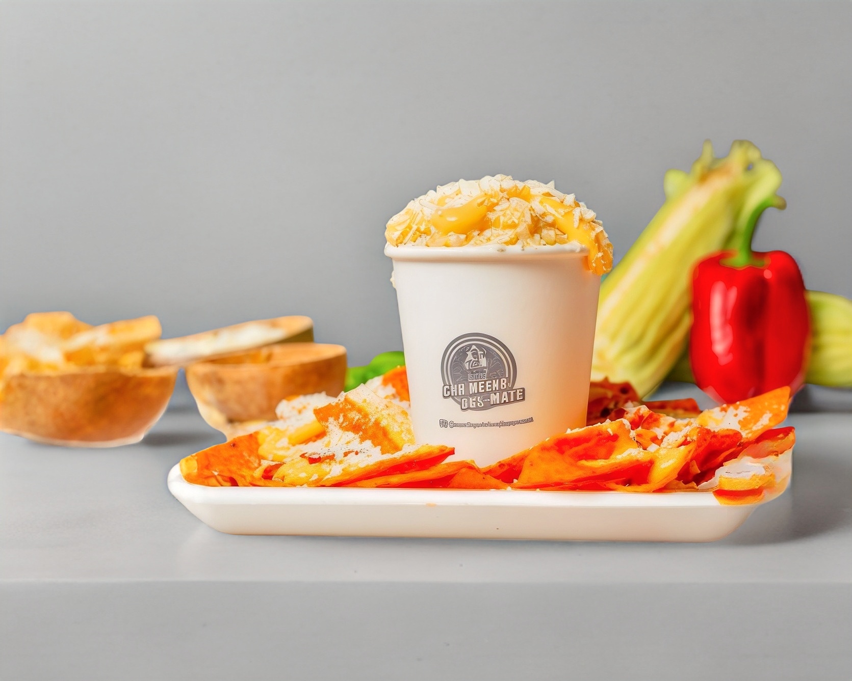 Tostitos, esquite, aderezo, queso doblecrema y queso amarillo. La porcion de esquite es de 8 onzas. Las frituras van cerradas. Todos los ingredientes se envian en un contenedor
