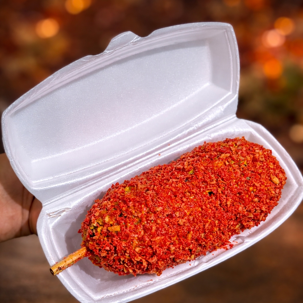 DELICIOSA BANDERILLA RELLENA DE QUESO MOZZARELLA CON CUBIERTA DE SABRITAS TAKIS FUEGO