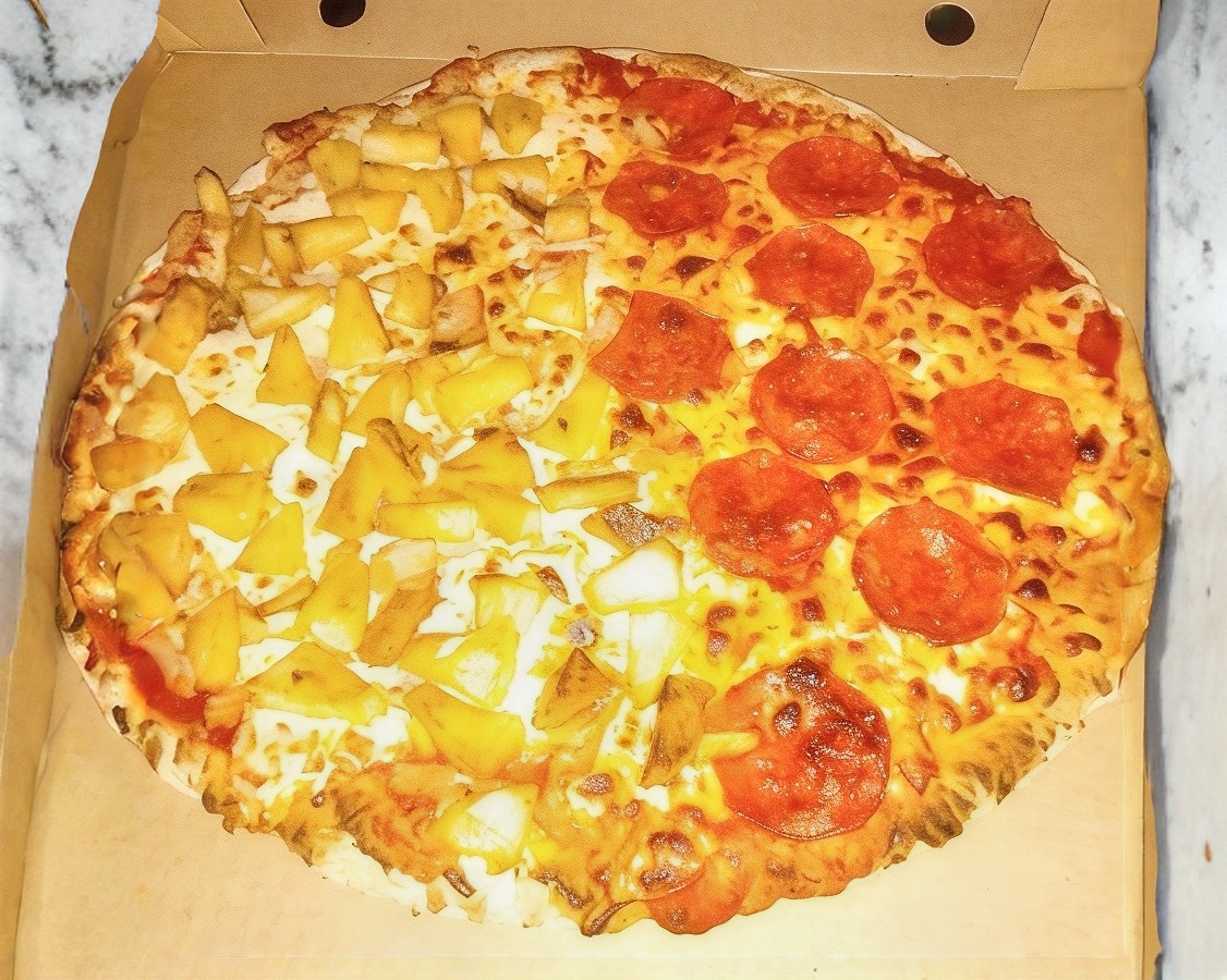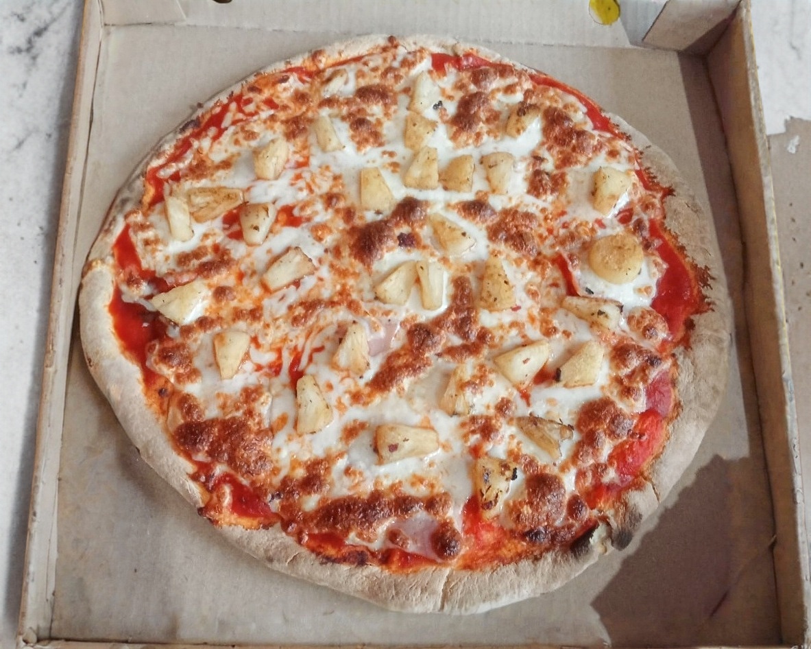 (PIÑA,QUESO MOZZARELLA,SALSA DE TOMATE,BASE DE PIZZA CASERA