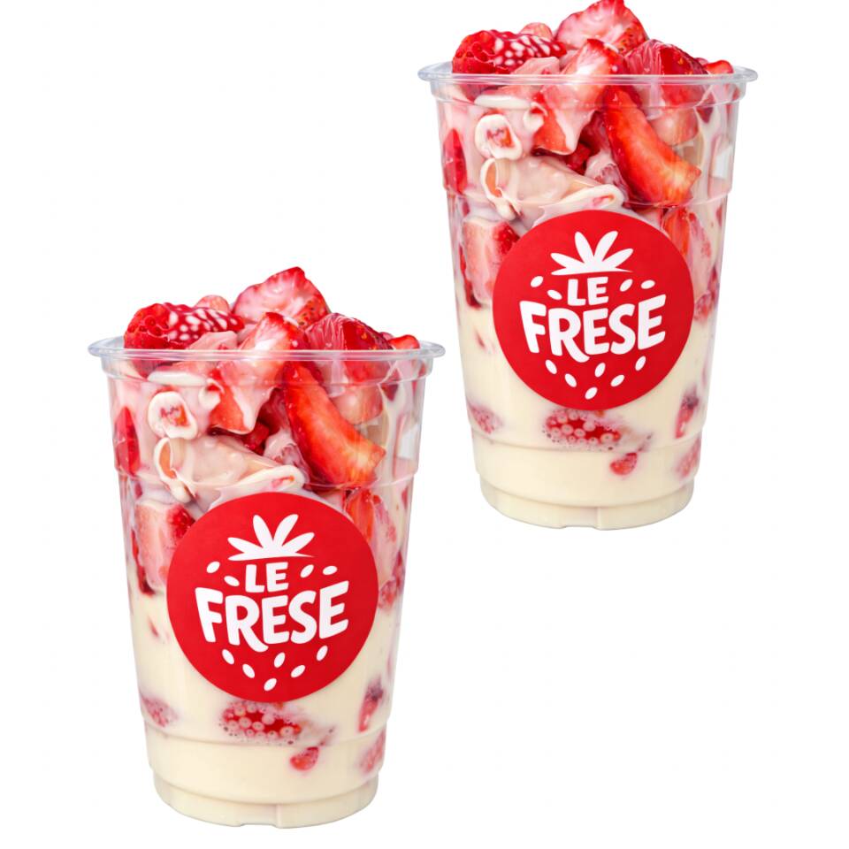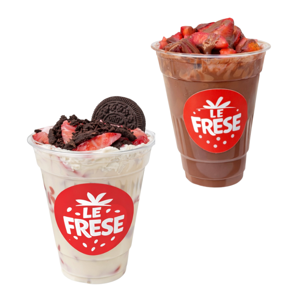 2 Fresas con crema 16 oz preparadas al momento con fresas frescas y nuestra crema especial. Perfecto para compartir. 🍓✨