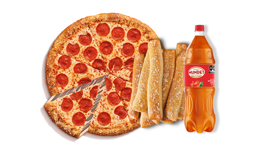 1 pizza grande de pepperoni o queso + 1 Crazy Bread + 1 Crazy Sauce + 1 refresco de 1.75L