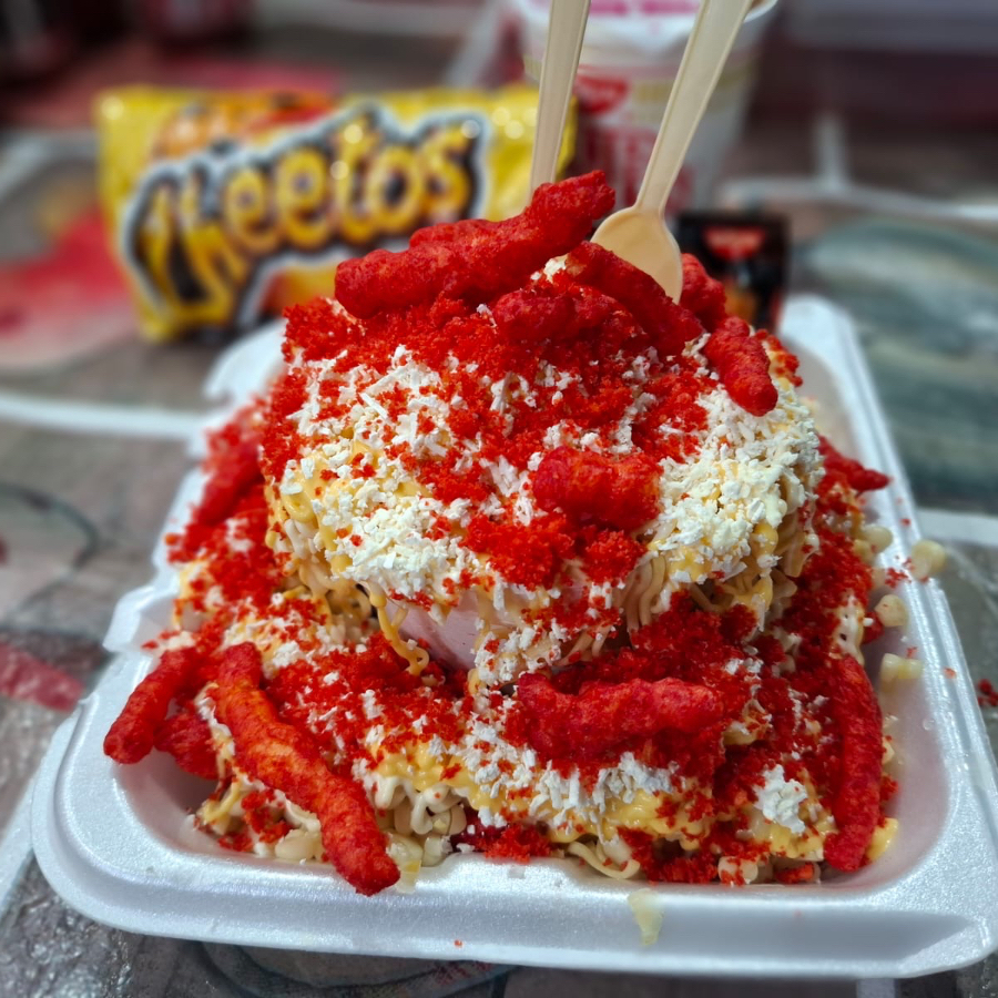 Chetos flamin hot. Esquites, mayonesa,queso cheddar
