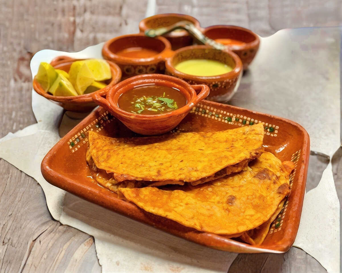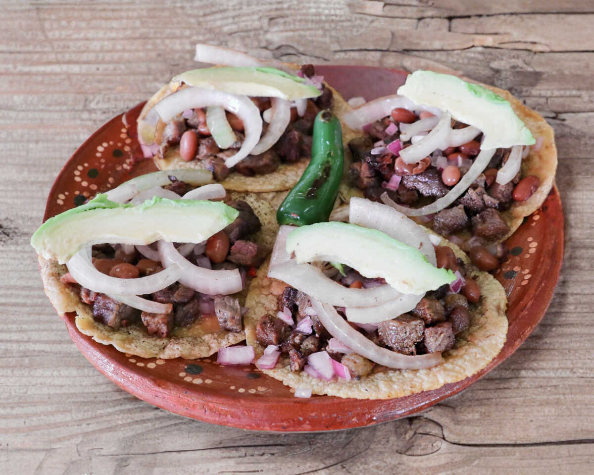 Se prepara con frijoles, salsa de jitomate, col y cebolla morada.