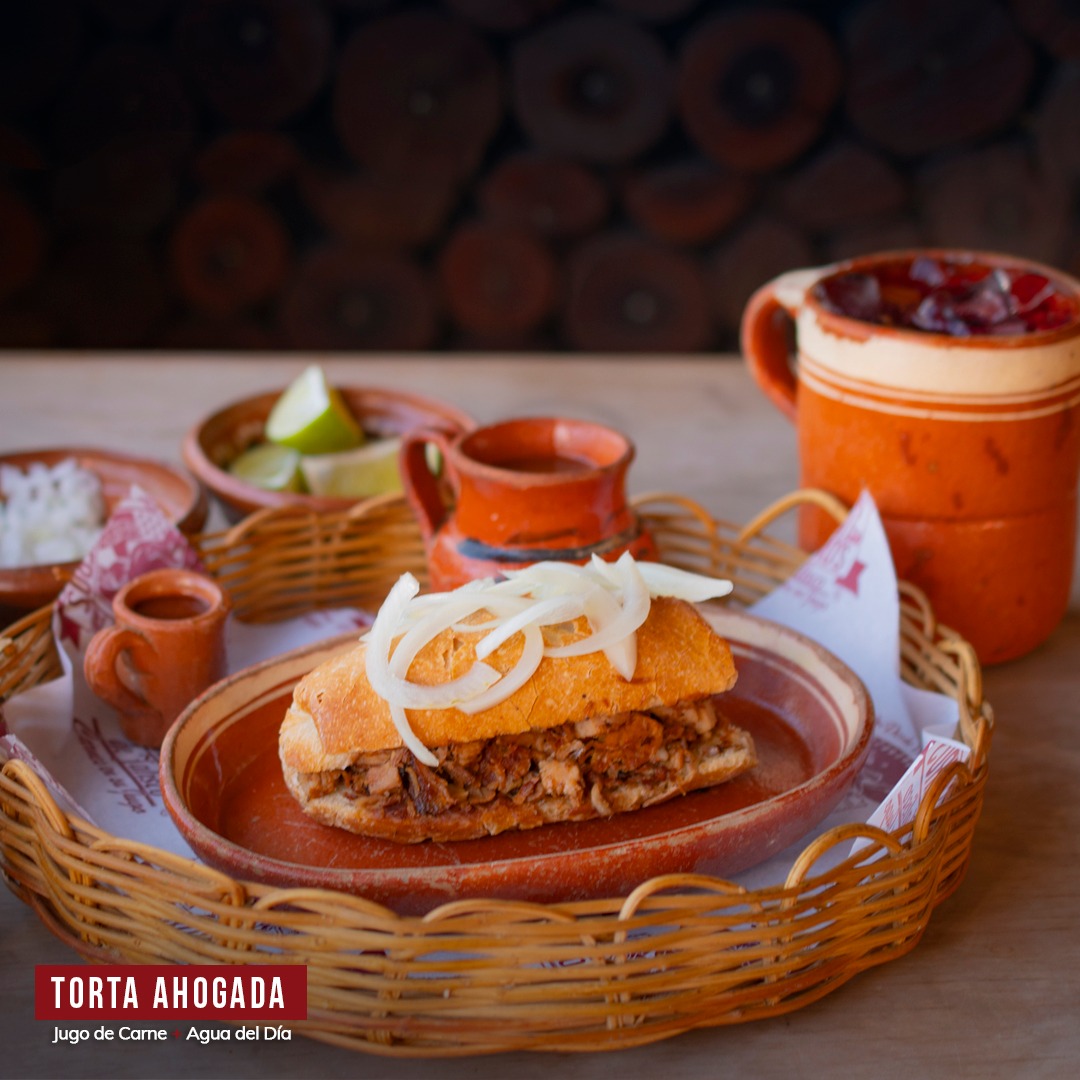 Jugo de carne+ torta ahogada+ agua de jamaica