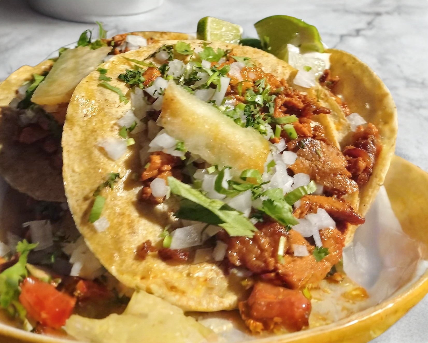 Orden de 3 tacos con doble tortilla y 150 g de carne, con queso extra (opcional).