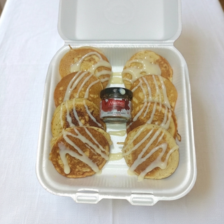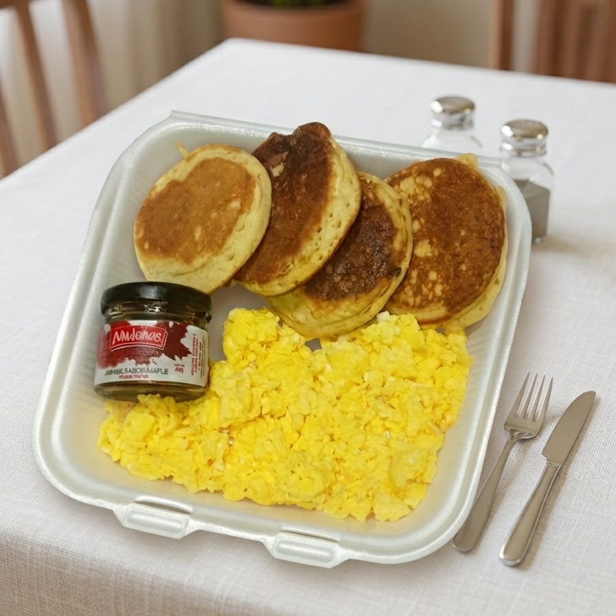 Dos tapos de maíz bañados en salsa de tomate verde crema Queso y cebolla
