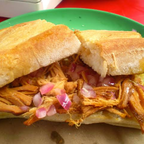 Bolillo relleno de chilaquiles crema queso cebolla lechuga