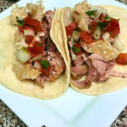Torta de lechón al horno con cuerito crujiente salsa y cebolla