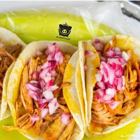 4 Taco de empanizado de pollo lechuga cebolla queso espolvoreado salsa