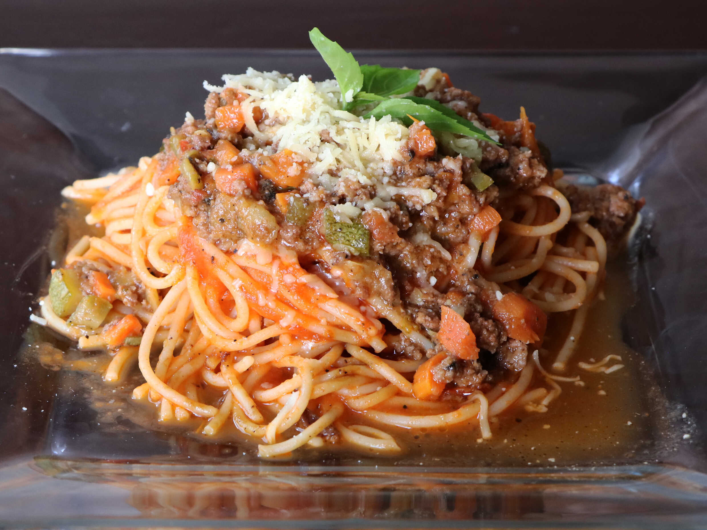 Espagueti para 2 personas.900 gm. deliciosa carne molida de res en salsa de tomate, acompañada de pan al ajo y chile quebrado.